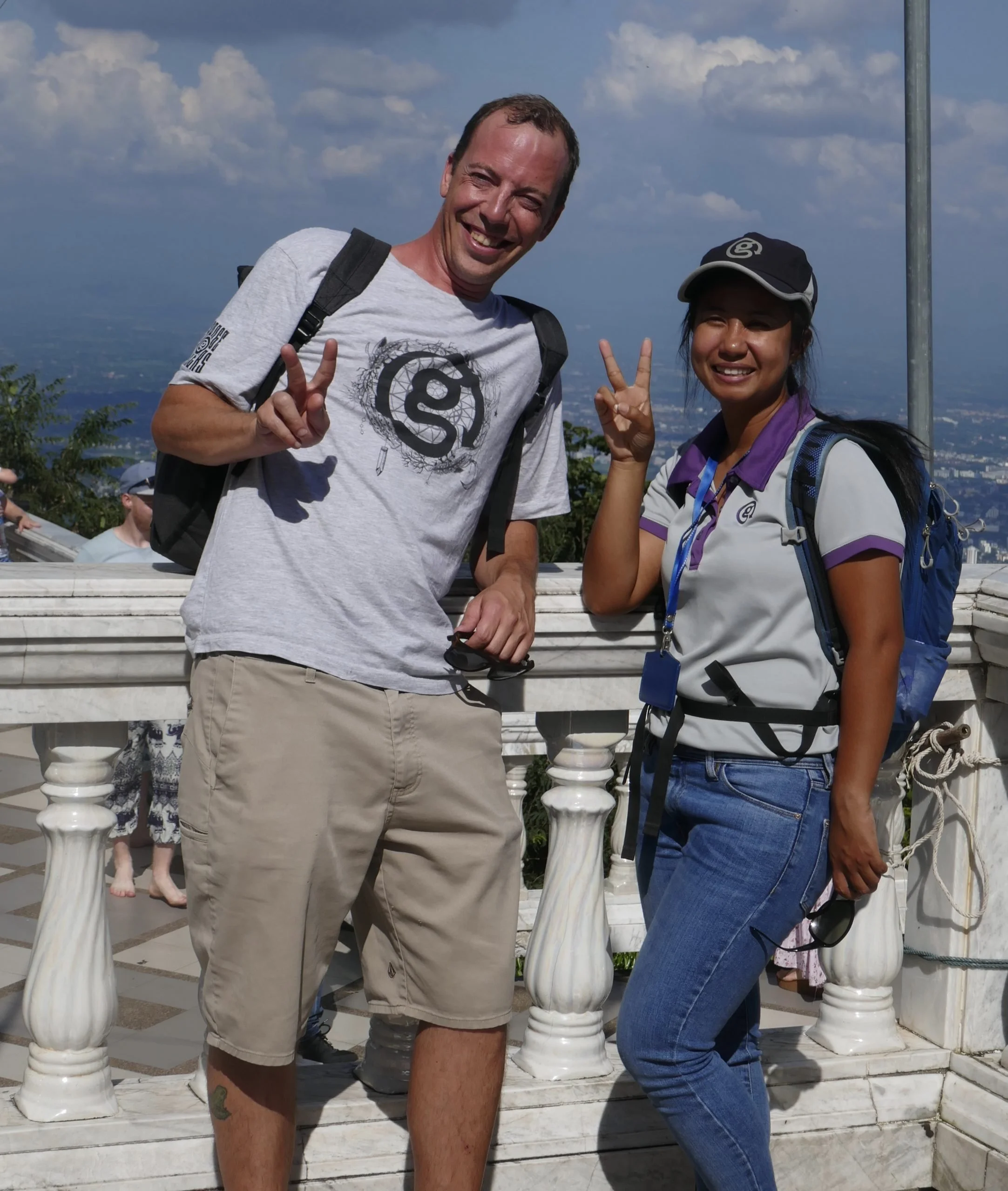 After a lesson in Thai massage at the famous Wat Pho Massage School our G Adventures group flew to Chiang Mai and toured the Wat Phra That Doi Suthep Temple, sitting at the top of over 300 steps! Despite being in the midst of rainy season, we had a perfect day for our visit.